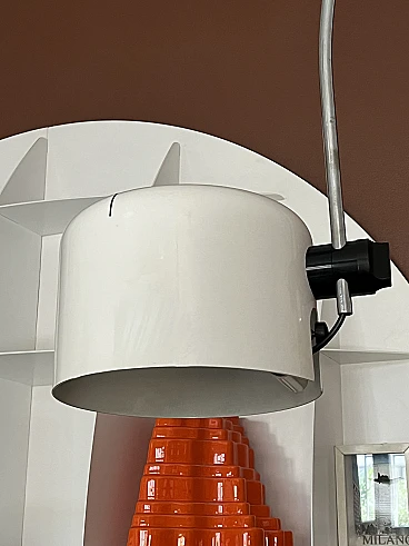 Arched lamp, Coupe model, designed by Joe Colombo for Oluce in white metal. Excellent condition; in working order.