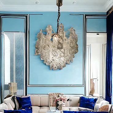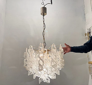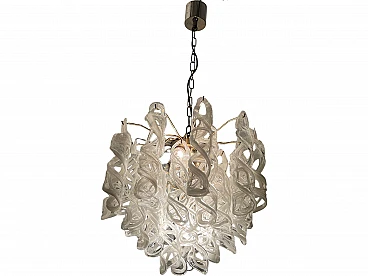 White Murano glass and brass chandelier by Mazzega, 1970s