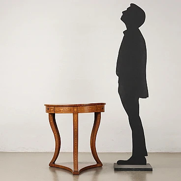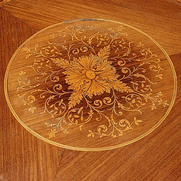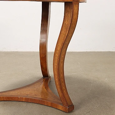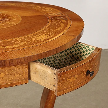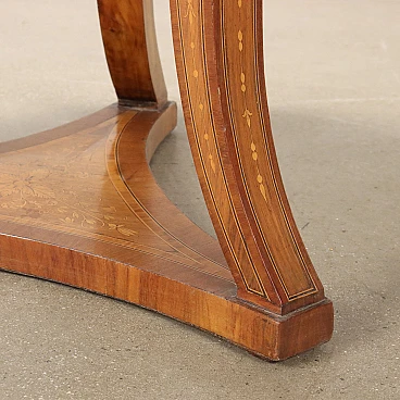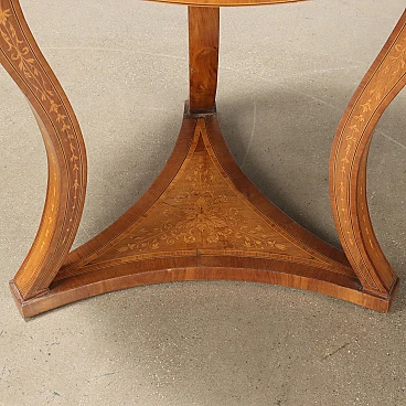 Round side table inlaid with phytomorphic motifs & wavy legs
