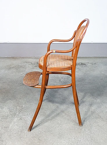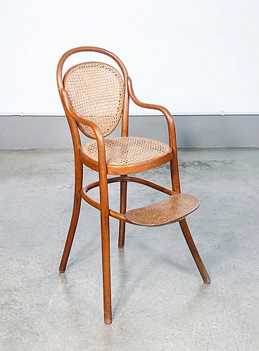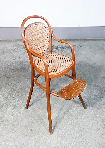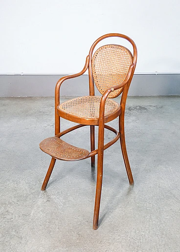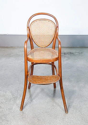 Children's high chair by Gebrüder Thonet (Austria), second half of the 19th century. Structure in bent beech, seat and back in Vienna straw. Gebrüder Thonet is a historic furniture company, founded in 1819 by Michael Thonet in Boppard, Germany. A pioneer in wood bending technology, the company became famous for producing the No. 14 chair, also known as the "coffee chair", introduced in 1859. This revolutionary model used a few pieces of steam-bent wood, making the chairs light, durable and easily stackable, ideal for mass production. As its operations expanded into various European countries and the United States, Thonet consolidated its position as a leader in furniture design. During the 20th century, the company also began producing tubular steel furniture, collaborating with prominent designers such as Marcel Breuer and Le Corbusier, who helped define the aesthetics of modernism. Seat: 60 cm. The high chair is in very good condition, as can be seen from the attached photos. It shows normal traces of age and use visible in the photos and some small worm holes that are no longer active.