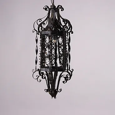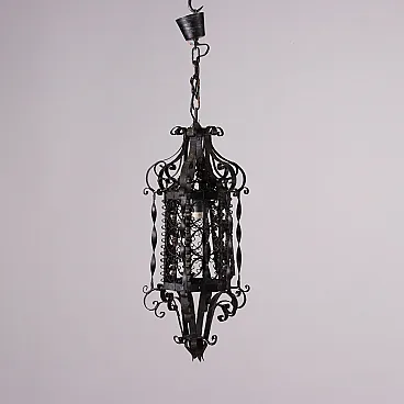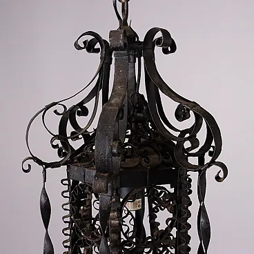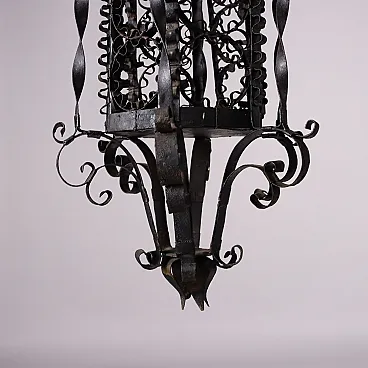 Wrought iron lantern, worked with neo-Renaissance style motifs.