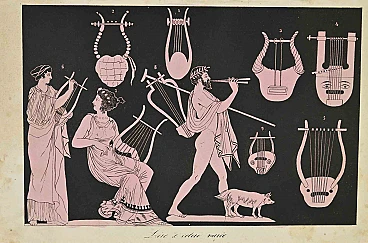 Lyre is a lithograph on paper realized in 1862.The artwork belongs to the Suite Uses and customs of all the peoples of the universe: " History of the government, of the laws, of the militia, of the religion of all the nations from the most remote times up to the present day".Very good condition.