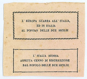 The Leaflet of the Italian Risorgimento is an original Propaganda leaflet realized in the 1850s.Good conditions with slight foxing.