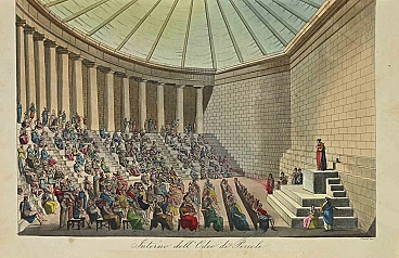 Interior of the Odeum of Pericles is a lithograph on paper realized in 1862.The artwork belongs to the Suite Uses and customs of all the peoples of the universe: " History of the government, of the laws, of the militia, of the religion of all the nations from the most remote times up to the present day".Very good condition.