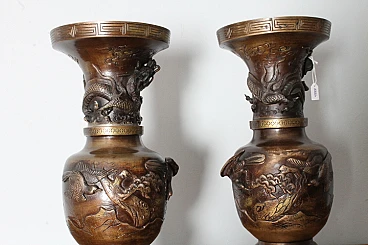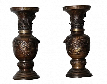 Pair of Japanese bronze vases, late 19th century