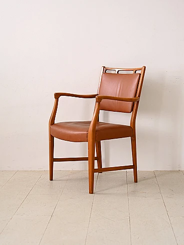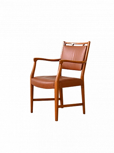 Wood and leather armchair by David Rosén, 1960s-70s. This exclusive piece personifies elegance and comfort with its handcrafted wooden structure and soft-line armrests that add a touch of sophistication to any room. The seat and back are padded and covered with original vintage leather. With its combination of fine materials and timeless design, this armchair is not just a piece of furniture but a statement of style and class, ideal for any room in the home. Good condition; a conservative restoration with natural products has been carried out. It may show some signs of time. Please pay attention to the photographs.