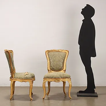 Pair of laquered and gilded chairs with wiggly legs, 19th century