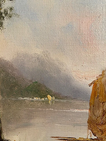 Francesco Mancini, lake glimpse, oil painting on panel, 19th century