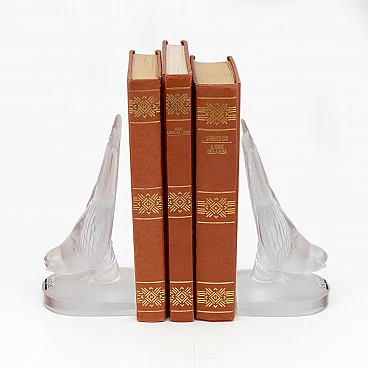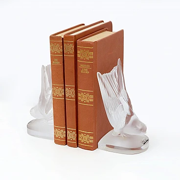 Pair of crystal Swallows bookends by Lalique, 1980s