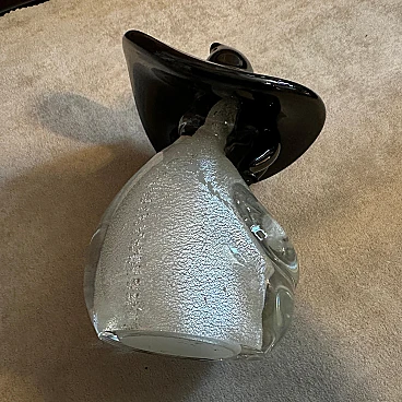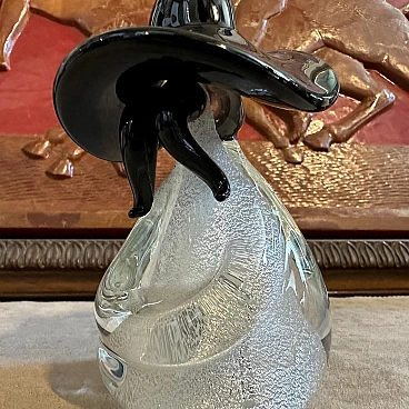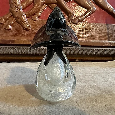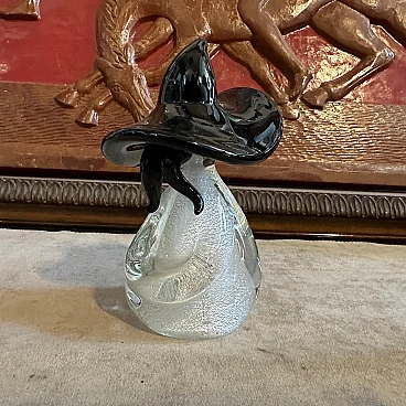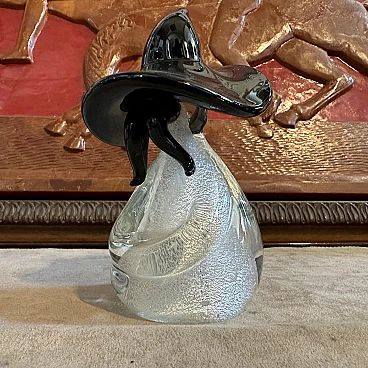 This glass figure of a Mexican is an extraordinary work of art, combining traditional Murano glass craftsmanship with modern aesthetics and cultural representation. The figure depicts a Mexican individual, characterised by his signature sombrero and poncho. The use of black and white glass lends a contemporary touch to the traditional Murano technique. The contrast between the two shades accentuates the intricate patterns and textures of the figure's clothing, creating a visually captivating effect. The figure is in perfect condition.
