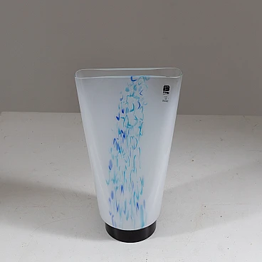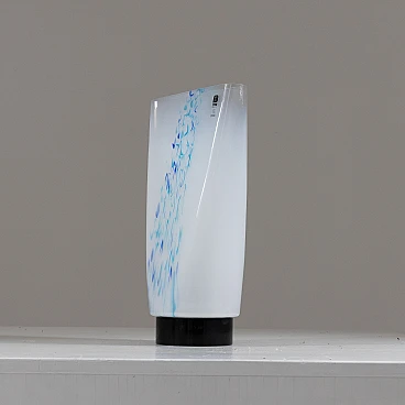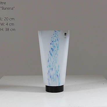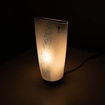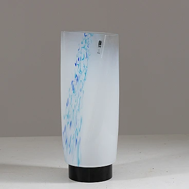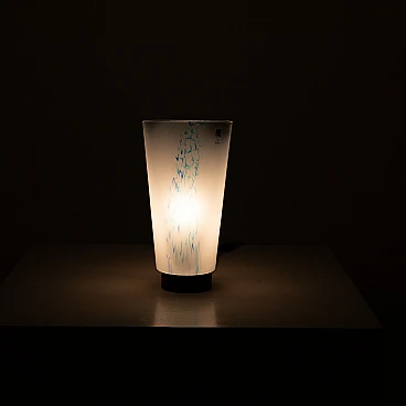 Small version Barena table lamp by ITRE, 1980s. Base in black painted metal and diffuser in transparent glass with blue/light blue decoration. Working. Condition like new. Manufacturing label present.