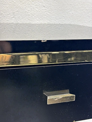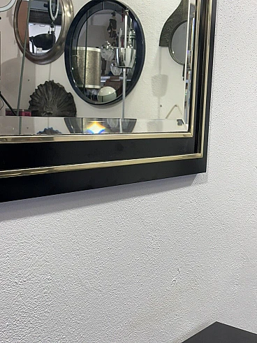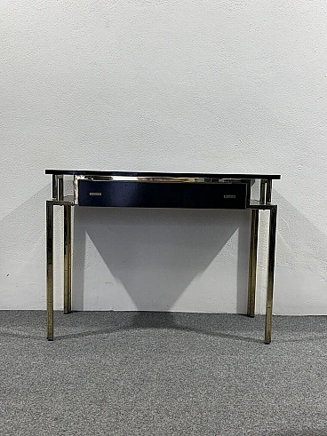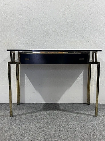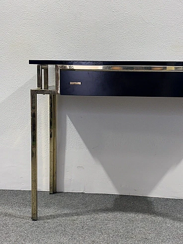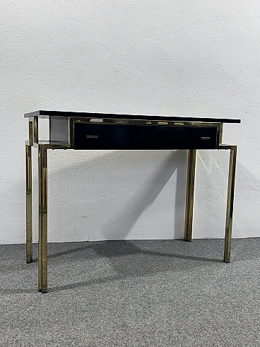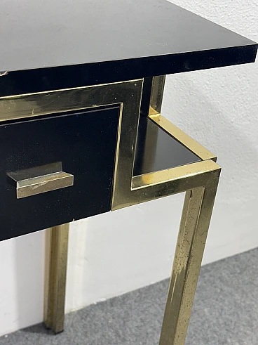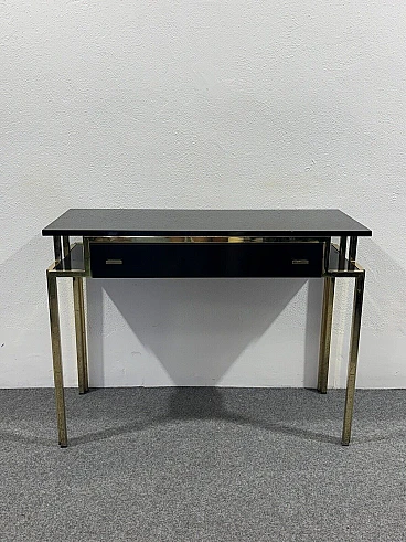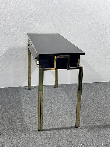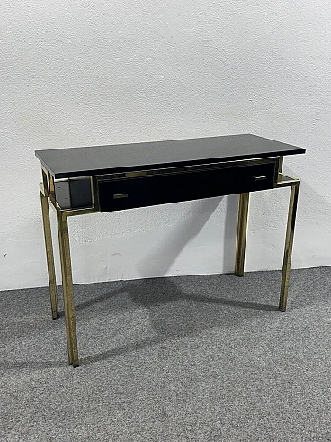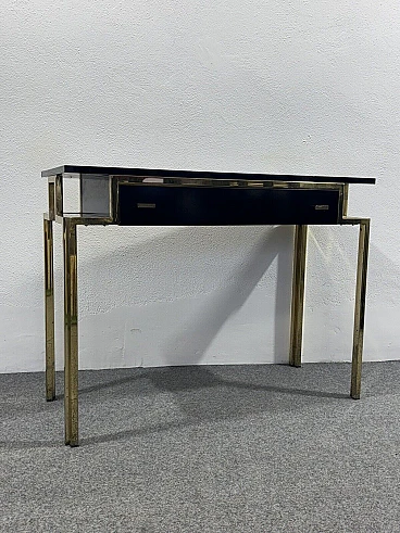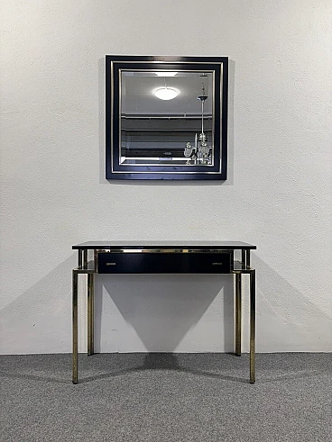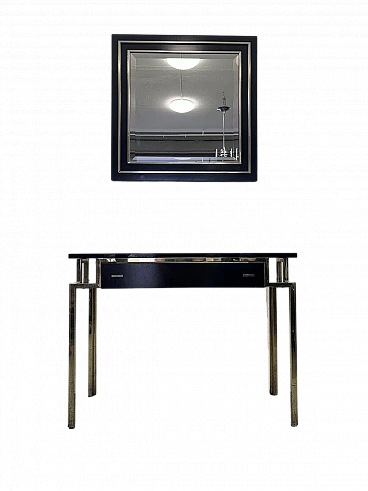 Gilded metal and black lacquered wood console and mirror, 1970s