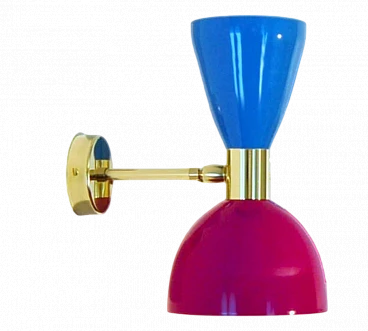Wall light with violet and light blue double cone lampshade