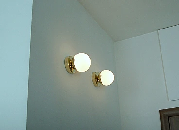 Brass and glass sphere wall lamp