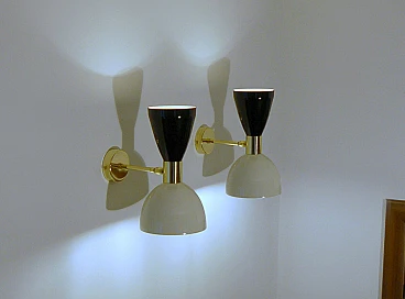 Wall light with black and white double cone lampshade