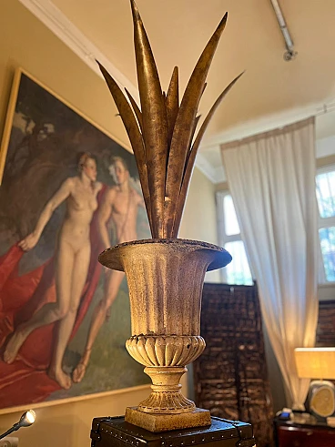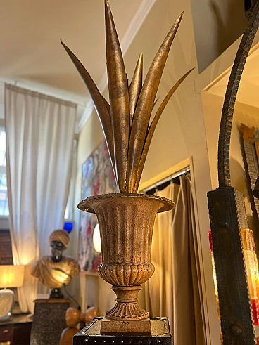 Pair of cast iron vases with agaves and gold leaf, 1930s