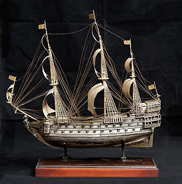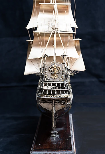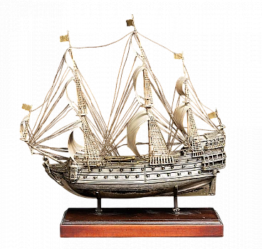 Description: Ancient Neapolitan sailing ship in solid silver belonging to the early 20th century. It bears the 800 hallmark typical of early twentieth-century Neapolitan manufacturing.