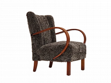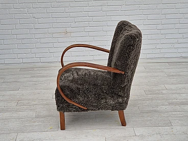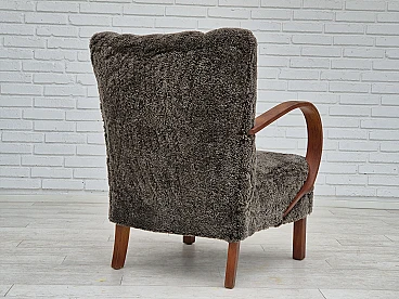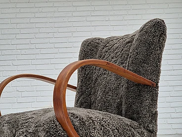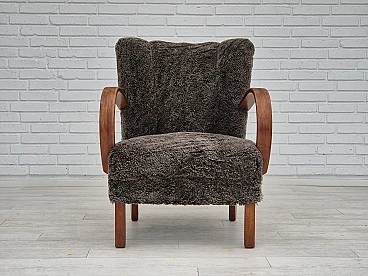 Beech wood and sheepskin Danish armchair, 1950s