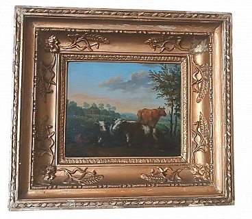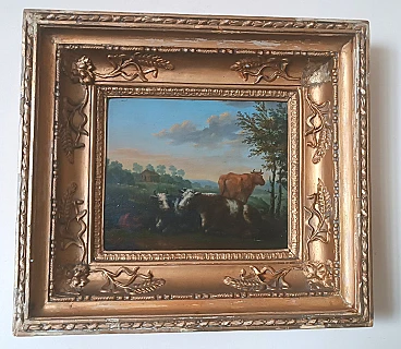 Bucolic scene, oil painting on panel, second half of the 18th century