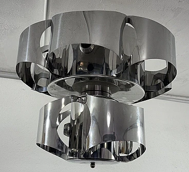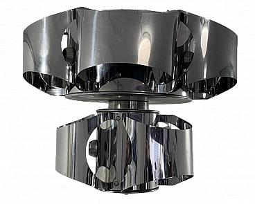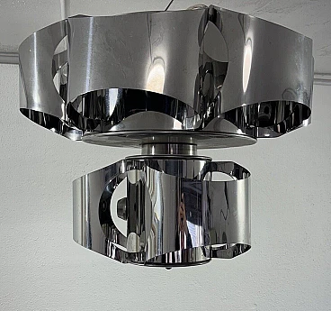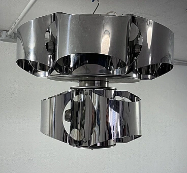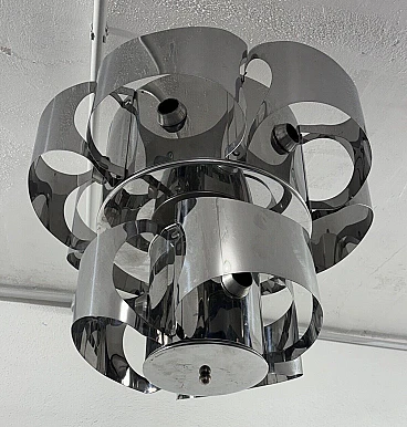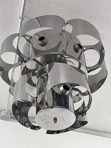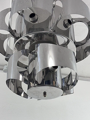 Nine-light curved chromed steel chandelier in the style of Max Sauze. Good conservation condition, there are no aesthetic or structural defects to report, only slight and obvious signs of time due to use and age (see photos).