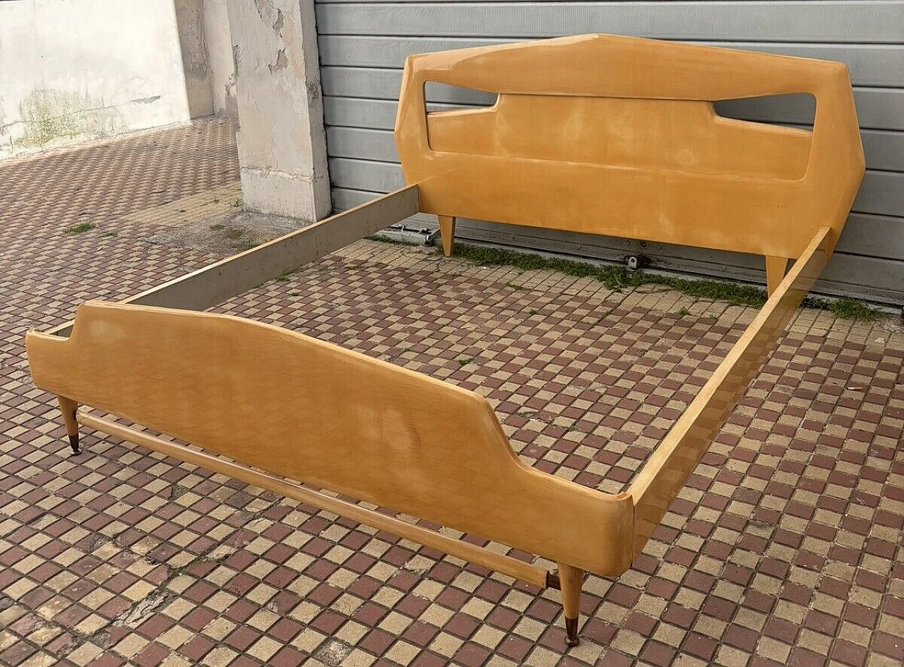 Maple double bed by Vittorio Dassi for La Permanente Cantù, 1950s. Good conservation conditions, only slight and obvious signs of time (see photos).