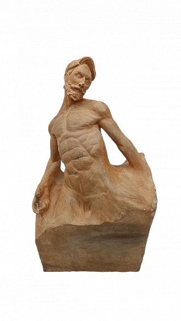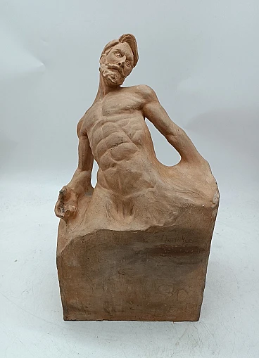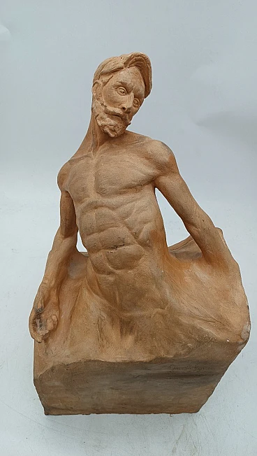 Mattia Vuch, male nude, terracotta sculpture, early 20th century