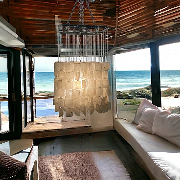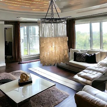 Additional Item Information - Mother of pearl vintage chandelier Verner Panton, 1960's Mother of pearl suspended on a chrome frame. Height 84 cm. Width 30 cm. Features 1 lights.