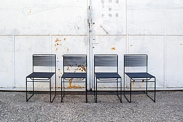 Four stackable chairs with lacquered metal frame, seat and back in PVC. Model Spaghetti, designer Giandomenico Belotti, manufacturer FlyLine, 1970s.