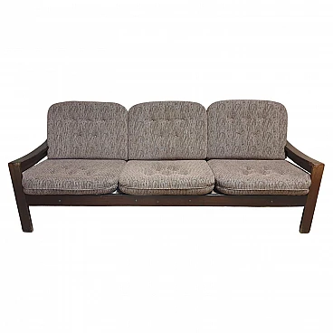Scandinavian style three-seater beech and fabric sofa, 1980s