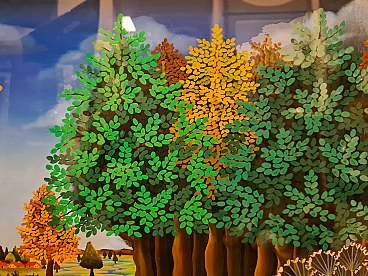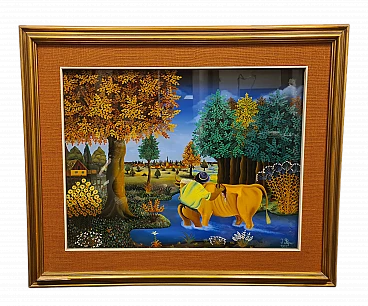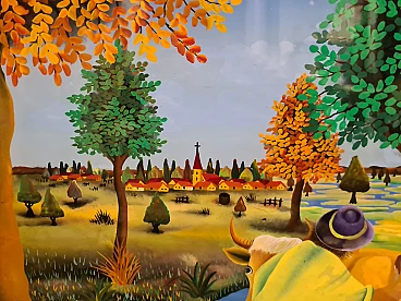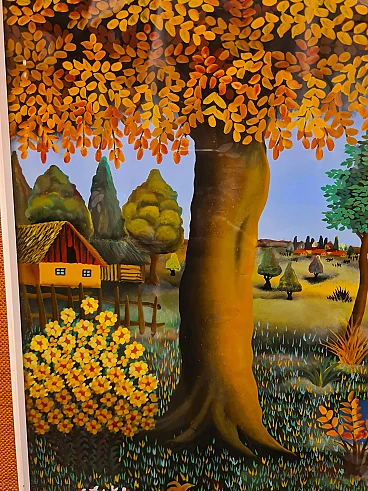Superb work in naive style with strong and bright colors given by the creation on glass typical of naive art.