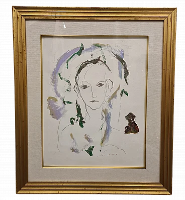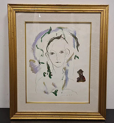 Work entitled Norma and created with mixed media on canvas cardboard. The work depicts a stylized woman's face typical of Treccani's art. The painting is in an excellent state of conservation.