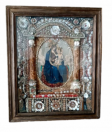 Case with Madonna and Child engraving, shells and coral, 19th century