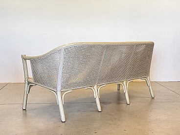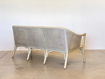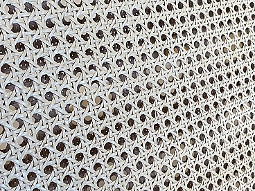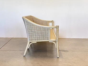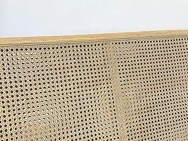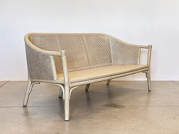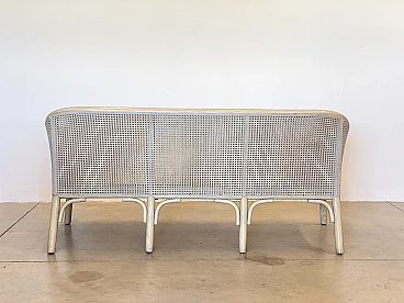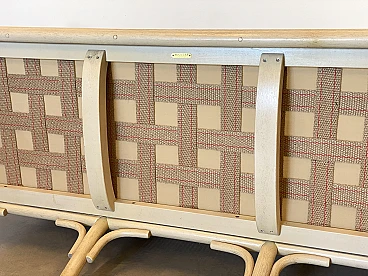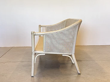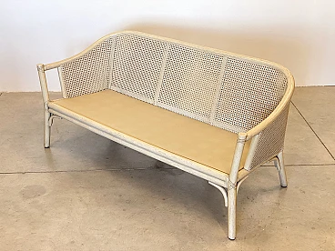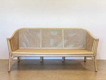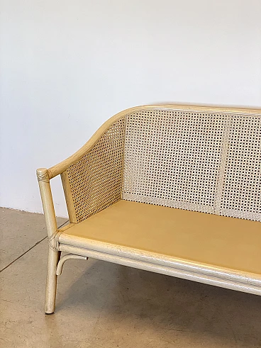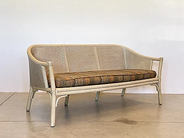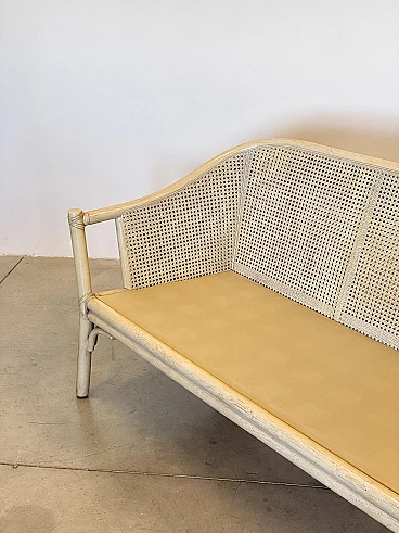 Sofa in laquered wood and Vienna straw with cushions by McGuire, 1970s