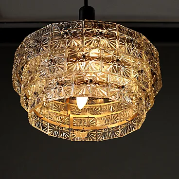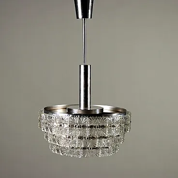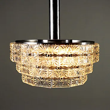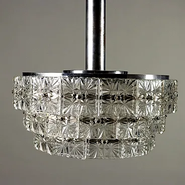 Ceiling lamp, chromed metal, worked glass inserts. 1960s-1970s.