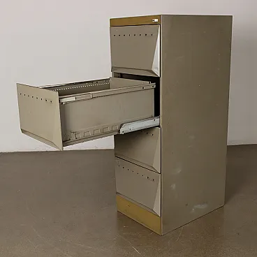 Grey metal four-drawer filing cabinet from the Synthesis series. 60's. Decent condition.