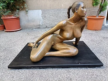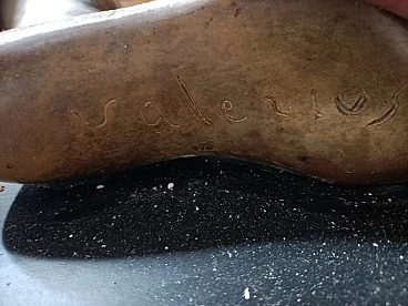 V. De Marchi, Nude of a woman, bronze sculpture on wood, 1980s