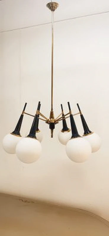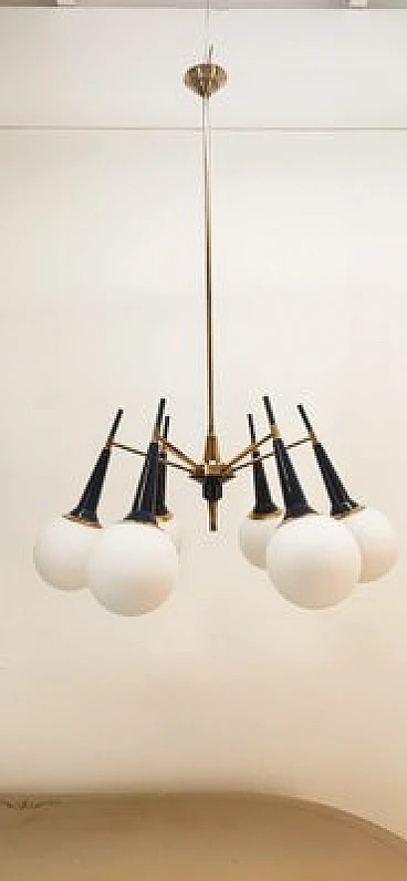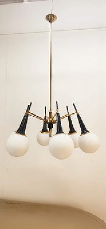 Sputnik brass and glass chandelier, 1960s