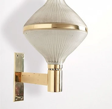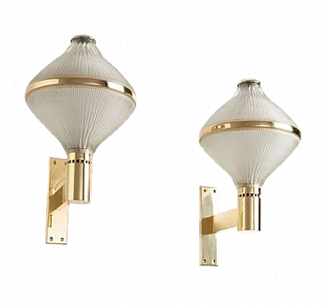 Pair of wall sconces in glass & brass by BBPR for Artemide, 1960s
