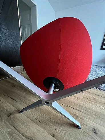Egg Chair armchair by Arne Jacobsen for Fritz Hansen. Designed in 1958 for the multi-story building of the Danish airline SAS and the Royal Hotel in Copenhagen. Aluminum base, Silver Grey 170, with shell mounted on a polished satin-finished steel pedestal. The shell is made of polyurethane foam with glass fiber reinforcement. Cold-cured polyurethane foam for upholstery and seat cushion. Upholstery in soft red Danish Divina Kvadrat fabric, extremely nice to the touch. Very good overall condition. It was purchased in December 2007 and has been used very little over the years. It has slight discoloration of the fabric, on the front, visible only when lifting the cushion.