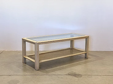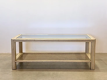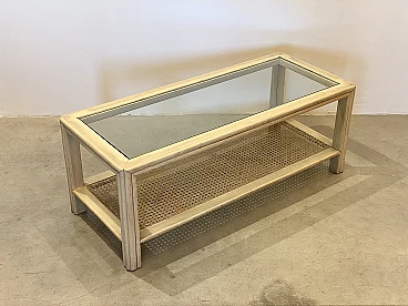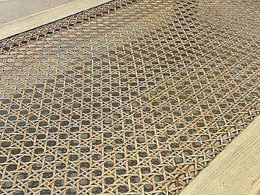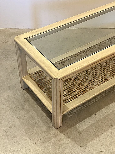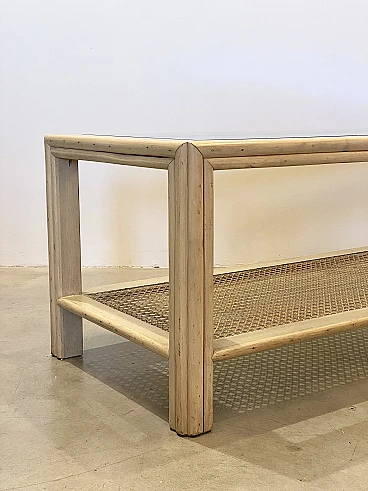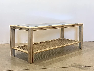 Oak, glass and Vienna straw coffee table by McGuire, 1970s