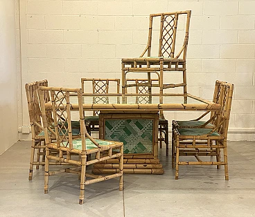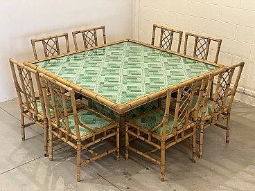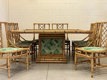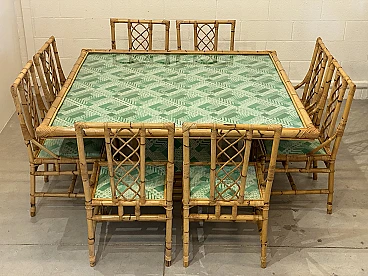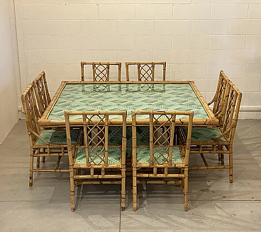 8 Chairs and table Sambù by Vivai del Sud, 1970s