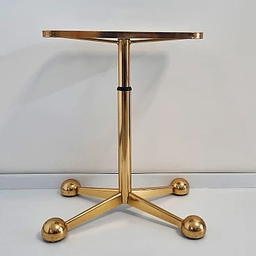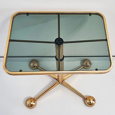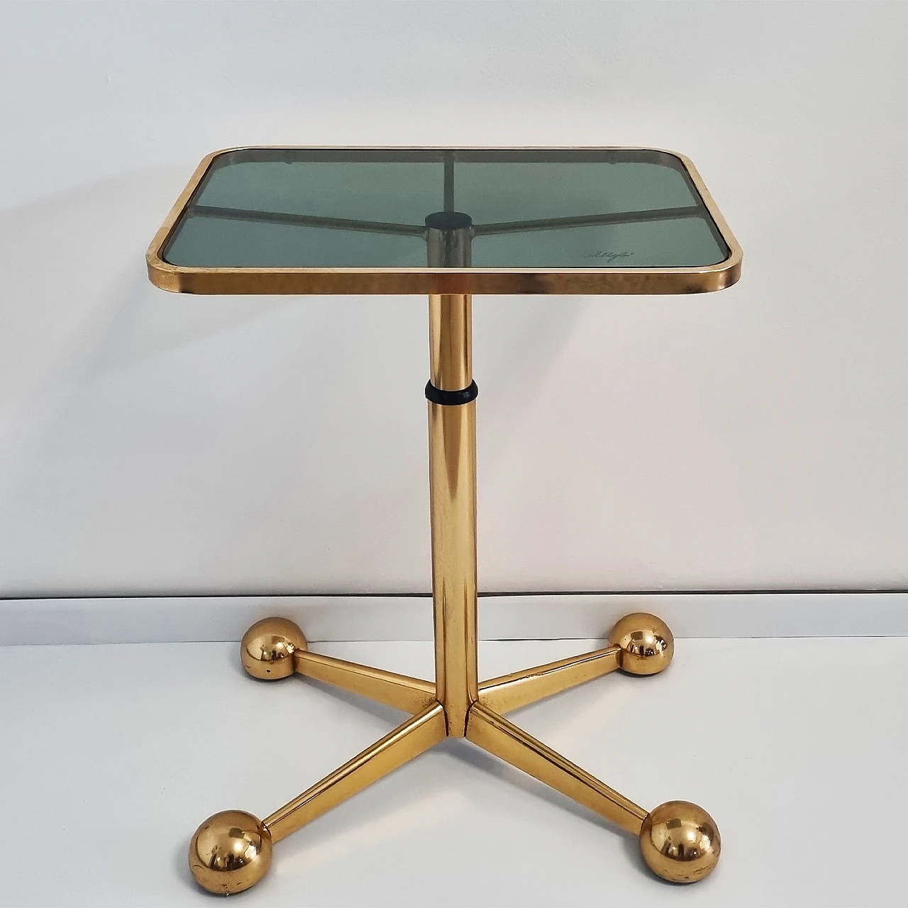 Coffee table by Allegri Arredamenti Parma, 1970s. Brass structure and smoked glass top. Labeled by the manufacturer on the central support. It can be adjusted in height. It has four covered wheels at the base.