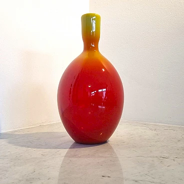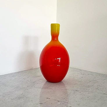 Vase mod. Alicja attributed to Polish designer Zbigniew Horbowy, 1970s. Antique orange sodium glass with yellow shading on the neck of the vase.