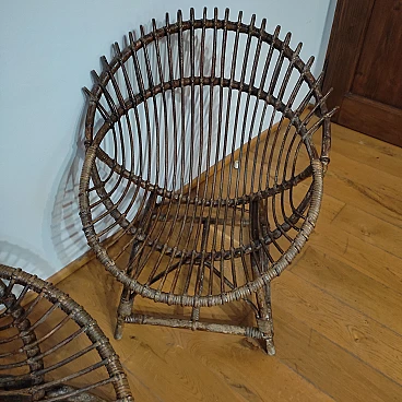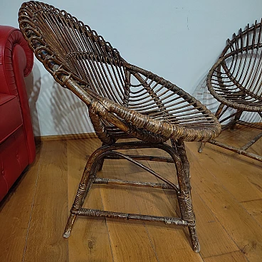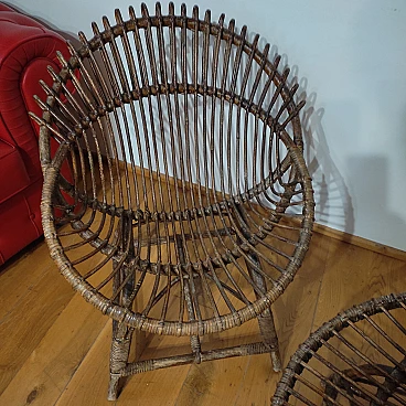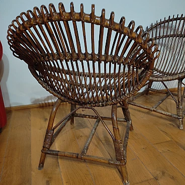 Pair of wicker and bentwood armchairs by F. Albini, 1960s