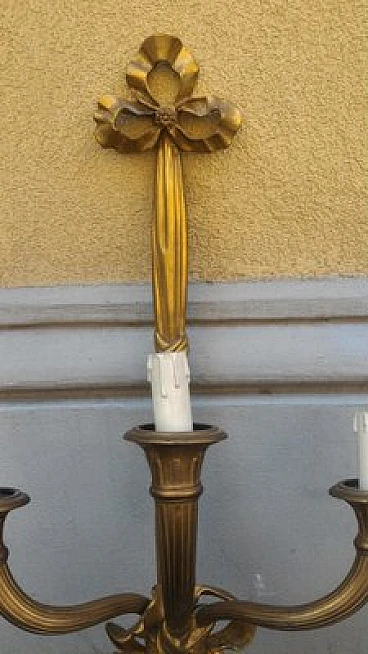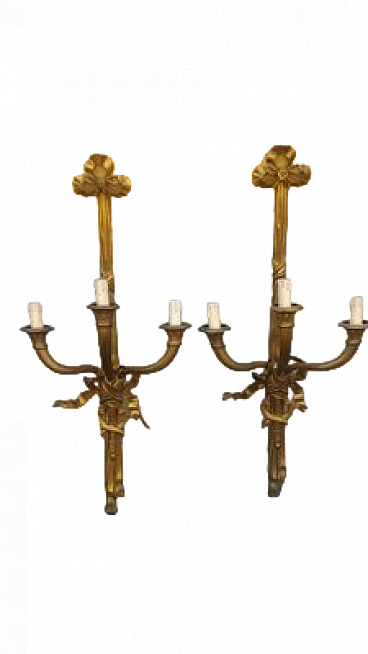 Pair of Louis XV style gilded bronze wall lights, 1950s