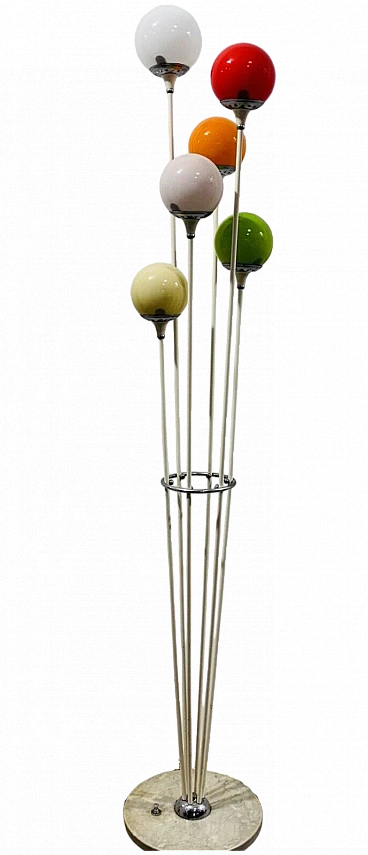 Alberello floor lamp by Stilnovo, 1960s. Metal structure, marble base, glass diffusers. Good conservation condition, there are no major aesthetic or structural defects to report, only slight and obvious signs of time due to use and age (see photos). Base diameter: 30 cm.