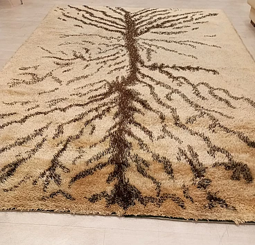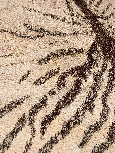 Hand-knotted carpet from the ‘Jungla’ series. In pure woven wool. The result of a collaboration with the painter Giuseppe Ajmone made with high quality materials, respecting the painter's chromaticity and graphic refinement. Italy ca. 1960s. ‘Pure wool’, manufacturer's label on back. Pugi was founded in the early 1900s as a manufacturer of carpets and furnishing fabrics. Giuseppe Ajmone (17 February 1923 - 8 April 2005) was an Italian painter. From 1941 he studied painting at the Brera Academy of Fine Arts, Milan, under Achille Funi and Carlo Carrà. In 1946 he was one of the signatories of the Realism Manifesto, also known as ‘Beyond Guernica’. He collaborated on the editorial staff of Numero (1944-1946), Pittura (1946-1948), Quaderni milanesi (1960-1962). He collaborated with Einaudi from 1947 to 1949. In 1951 he won the ‘Senatore Borletti’ award for young Italian painting and was a member of the Technical Committee of the Milan Triennale. His works appear in public and private collections.