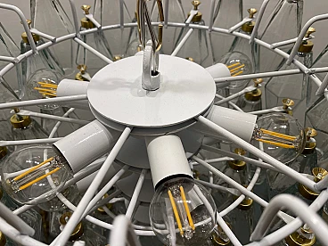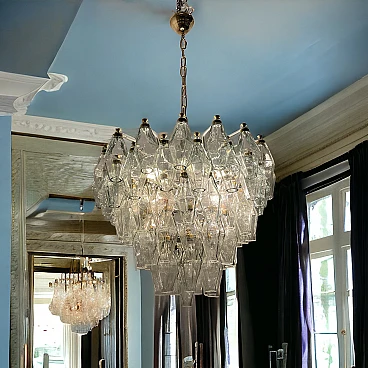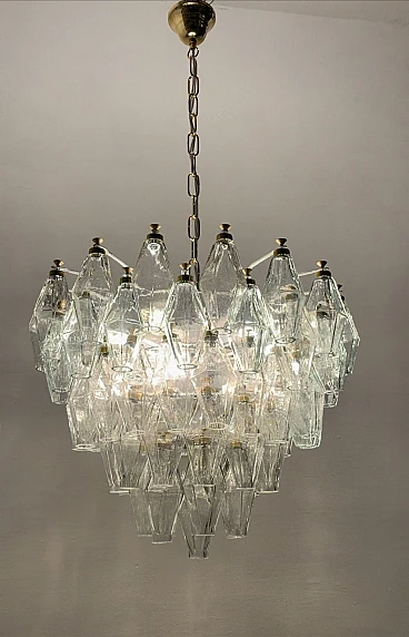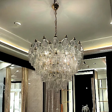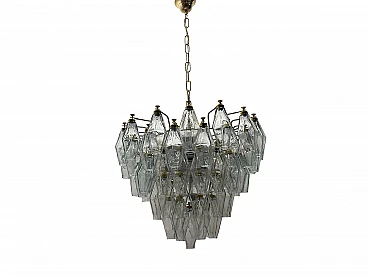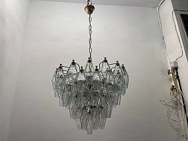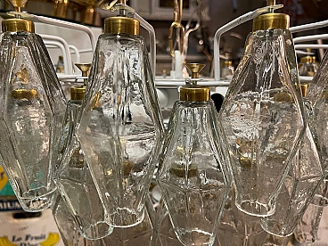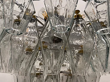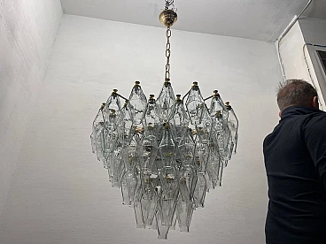 Murano glass polygon chandelier, 1980s. Price - € 1990,00 per item. Italian design, 1980s production. Composed of 70 transparent/white Murano glass polygons. New metal frame. New wiring installed compatible with UK, Europe and USA. Height with chain and ceiling canopy 96 cm, height without chain 44 cm, width 50 cm. Standard weight between 40 kg and 80 kg. Very good condition, this vintage/antique item has no defects, but may show slight traces of use. Electrical components rewired and/or new. Is this piece in working order? Yes, I had the piece rewired by a professional electrician.