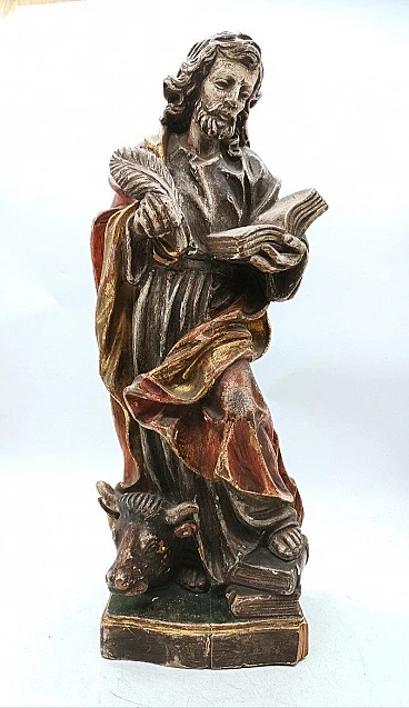 Saint Luke the Evangelist, polychrome wood sculpture, 19th century