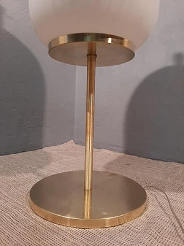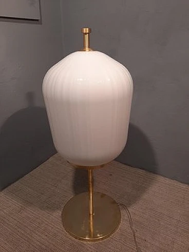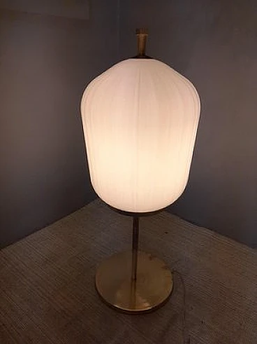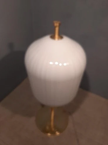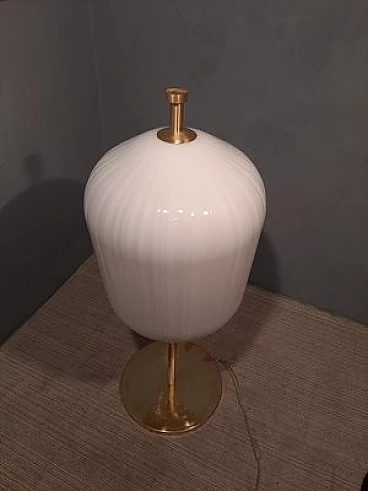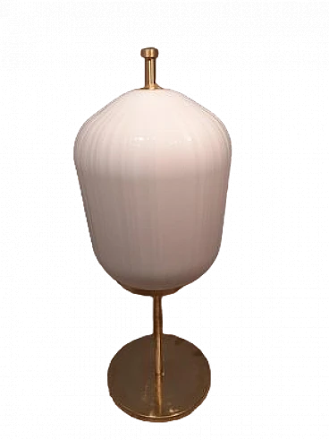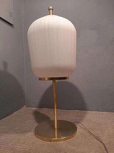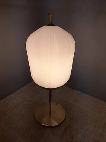Table lamp with brass stem and satin glass lampshade, 2000s